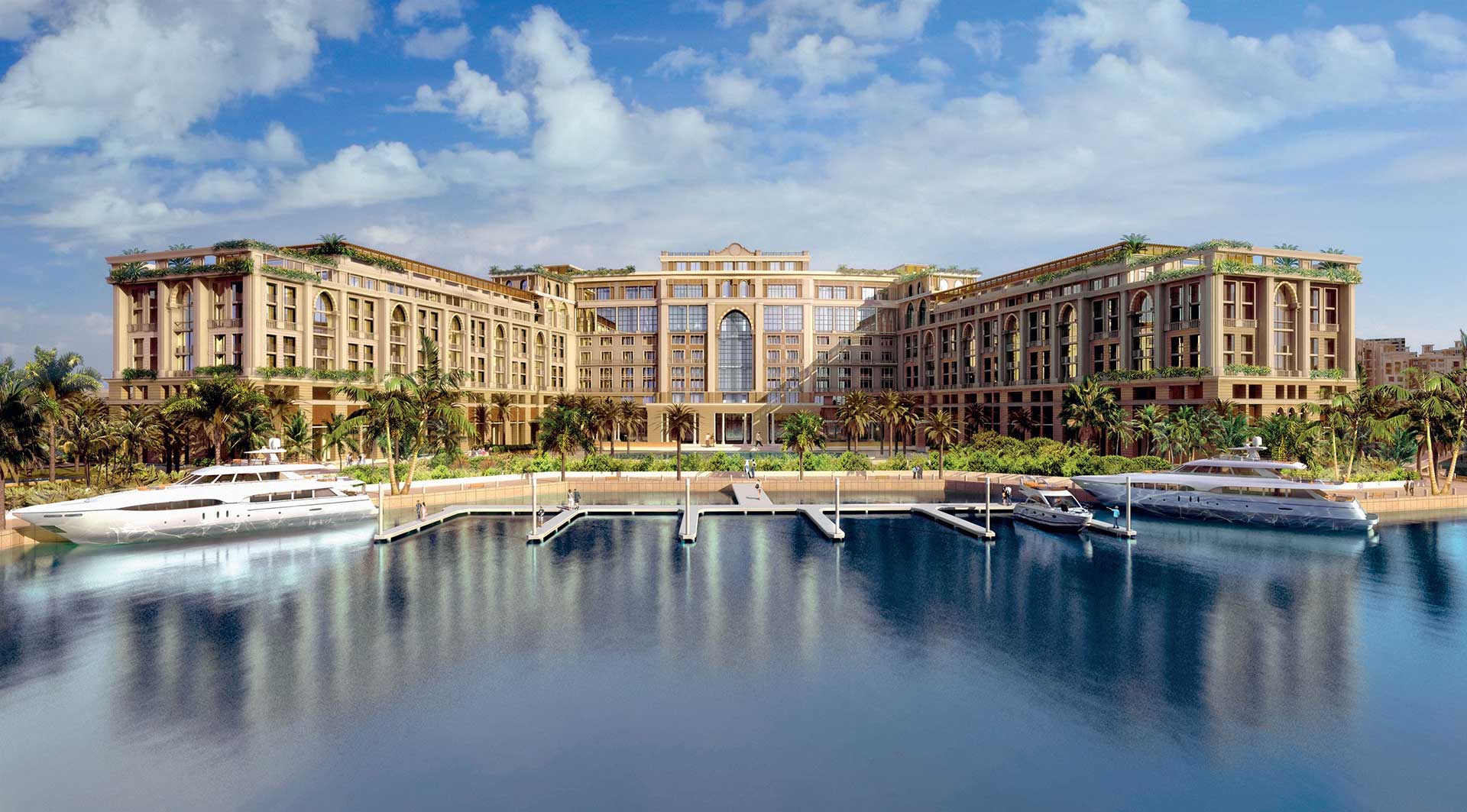 All 215 rooms and suites, along with 169 residences, are furnished with custom-made Versace pieces. Each of the nine restaurants and bars features an al fresco terrace, echoing the traditional Palazzo courtyard experience. Three mosaic-tiled outdoor pools, lush gardens, and sweeping views of Dubai Creek make this a perfect luxury escape and an exceptional venue for weddings and social events.